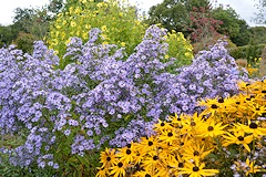 The colour of an Autumn bed, filled with many varieties of Michaelmas Daisies /Asters, with a backdrop of golden Rudbekia and Japanese Anemones, was simply stunning. However, the bed that caught most people's eyes, was the Dahlia bed. What a wonderful sight it was! So many different varieties and colours, laden with bees and other pollinating insects. There was Agapanthus, which sadly had just about finished blooming but their faded flowers were still evident.